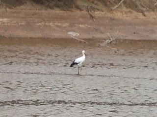 兵庫県豊岡市にて放鳥されたコウノトリの一羽が近所のため池に飛来してきました。